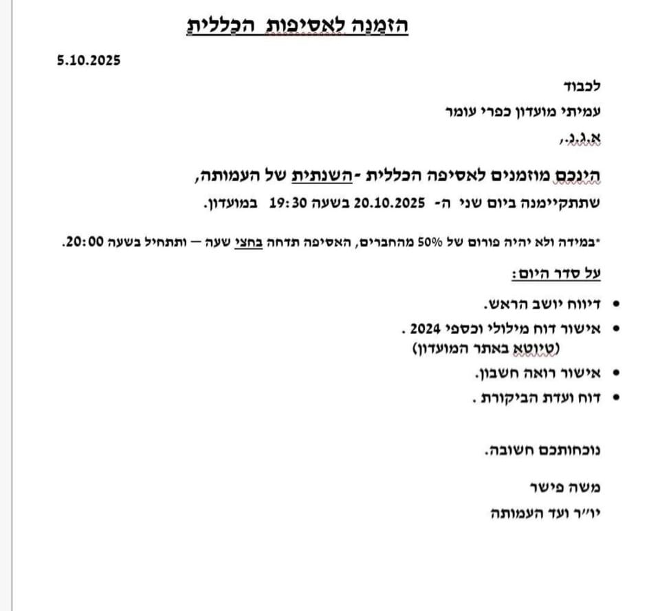 פרוטוקול האסיפה ובחירת ועדת ביקורת